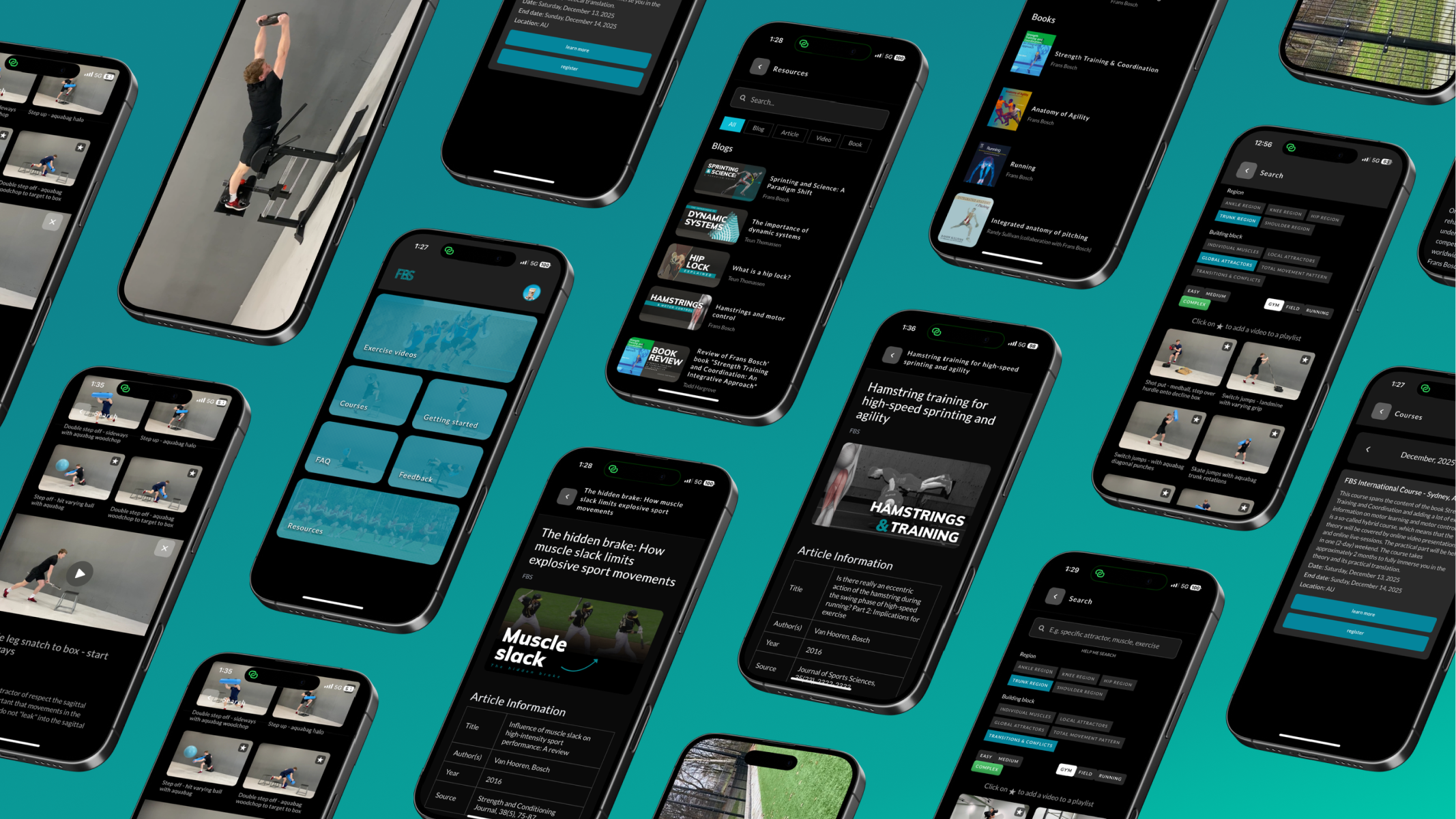 The FBS Exercise App provides access to a structured library of high-quality exercise videos, grounded in the Frans Bosch Systems philosophy.